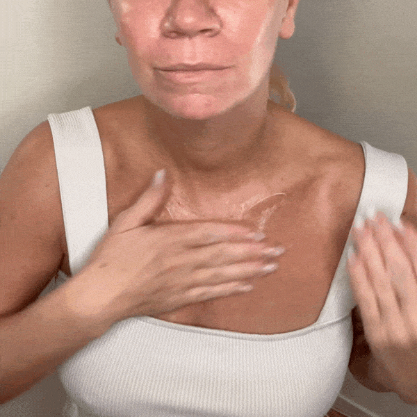 ČIŠTĚNÍ – Naneste na čistou a suchou pokožku krku a dekoltu, aby se připravila na optimální vstřebávání.
